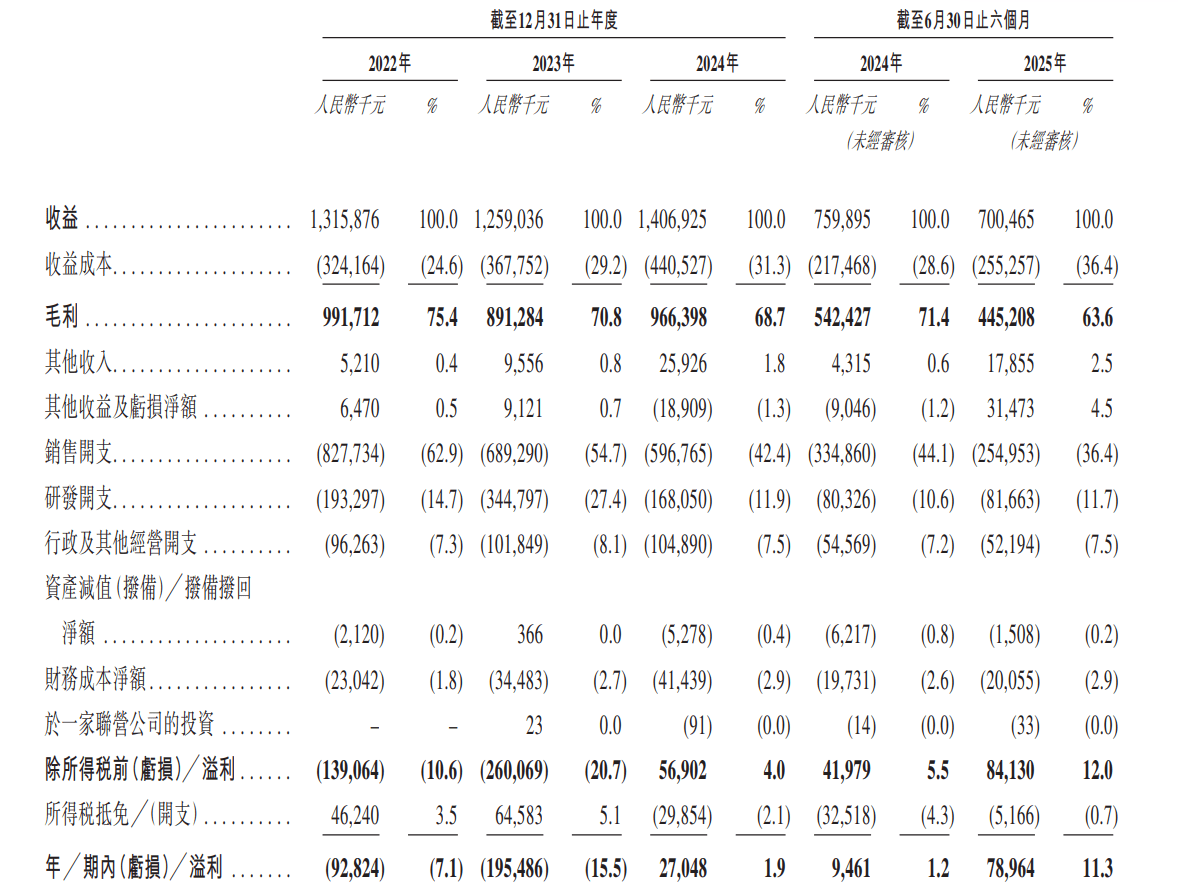 整体来看,这些产品并非大市场的大品种,且面临一定竞争压力,给科兴制药带来的增量还是比较有限的。从招股书可以看到,2022-2024年,科兴制药的收入分别为13.16亿元、12.59亿元、14.07亿元,期内利润分别为-9282.4万元、-1.95亿元、2704.8万元。