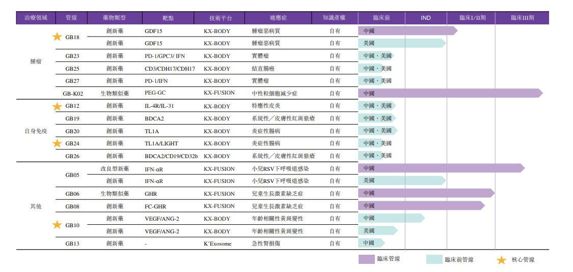 此次,科兴制药在招股书也重点透露了其研发进展:目前建立了“3KX技术平台”,集成分子设计、长效化修饰、工艺放大、人工智能驱动的抗体发现及外泌体递送技术,基于此,两项III期临床项目、三项I期╱II期临床项目及十项临床前项目正在进行中。