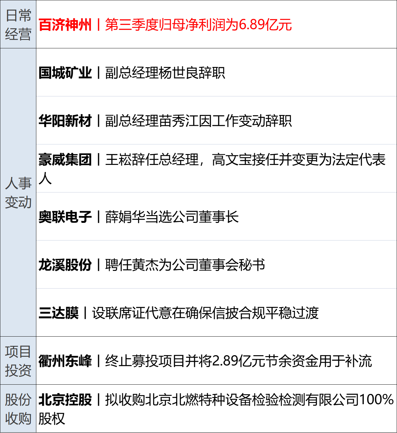 北大医药(SZ000788,股价6.68元,市值39.81亿元):11月12日,北大医药公告称,公司董事长、总裁徐晰人因涉嫌刑事犯罪,已被重庆市江北区人民检察院批准逮捕。目前,公司董事陈岳忠代为行使董事长职责,常务副总裁余孟川代为行使总裁及法定代表人职责。公司控制权未发生变化,董事会运作正常,财务及生产经营管理情况正常。公司将持续关注并履行信息披露义务。