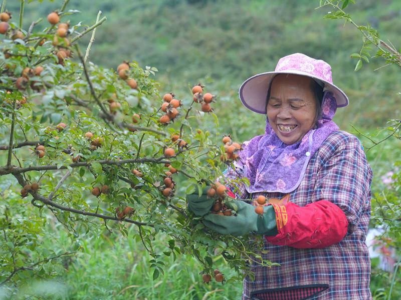 值得一提的是,金刺梨产业不仅为青壮年提供了就业岗位,也为村中长者创造了发挥余热的机会。今年72岁的朱发香老人动作麻利,丝毫不逊于年轻人。“我来这里摘刺梨,既锻炼了身体,又能每天赚一两百块钱,比闷在家里强多了。”老人笑着说,这份工作让她在获得收入的同时,也找到了生活的乐趣和与同伴交流的温暖。