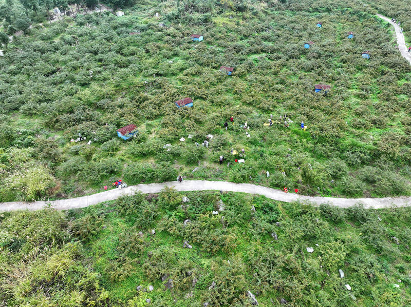 丰收的背后,离不开精细化的田间管理。赵启菊特别强调了管护的重要性:“在金刺梨种植过程中,科学管护是关键环节,尤其是病虫害防治。如果防治不到位,会直接影响果实的规格、外形和口感。”她还指出,由于剪枝、除草、施肥、采果等环节都需要大量人工,合作社常年为当地村民提供就业机会。“像今天这样的采收日,我们聘请了50多名工人,单日人工支出就要五六千元。这些工人都是周边村民,常年在这里务工,年均收入都能达到一两万元。”