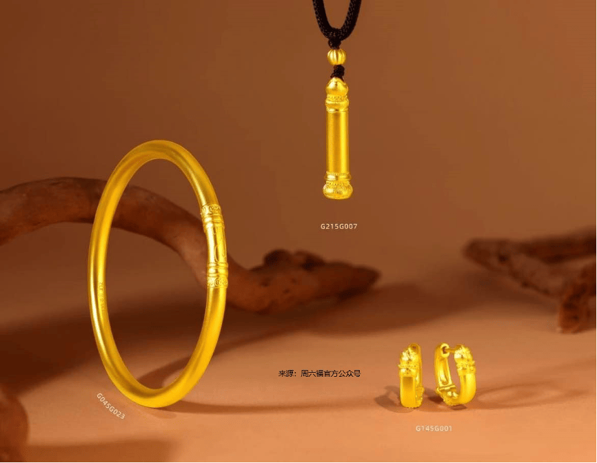 在产品层面,周六福精准把握不同群体的需求,构建了“经典+时尚”的多元化矩阵,避免了同质化竞争。针对传统黄金消费群体,其推出采用古法制金技艺的系列产品,将瑞兽、瑞纹等传统文化元素融入设计,凭借厚重质感与文化内涵站稳市场;而面对Z世代等年轻消费者,则打造出兼具性价比与时尚感的系列,例如与和平精英和葫芦兄弟等知名IP合作,加强品牌在年轻消费群体的知名度。