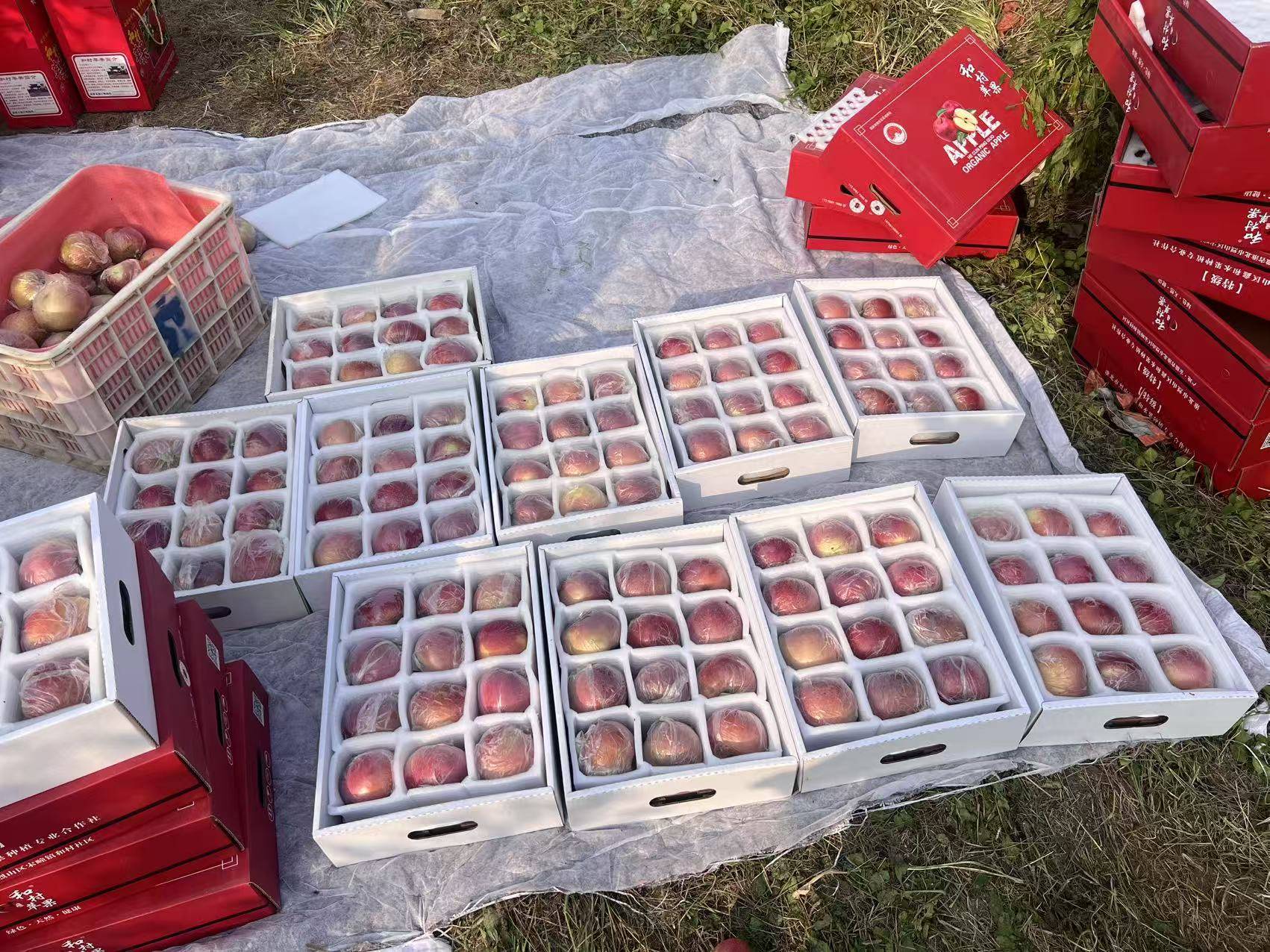 果园正在打包准备售卖发货的苹果,图摄/黄康睿