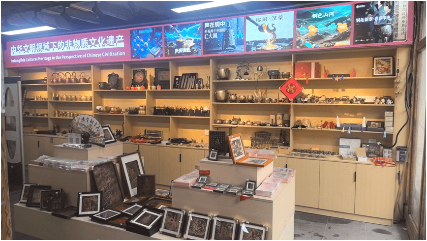 在“铜徒学堂”,市民与游客得以沉浸于铜文化的独特氛围:可以亲手参与青铜器纹饰拓印,体验铜工艺小品的制作乐趣,在匠心手作中触摸千年铜都的历史脉动;可以欣赏并选购一系列以铜文化及本地非遗元素为灵感设计的精美文创产品,将独具特色的“铜陵故事”携回家中。这种“可观、可感、可参与、可消费”的沉浸式运营模式,成功地将非遗从静态的“馆藏珍品”与“书本知识”,转化为动态的、可亲近的“生活美学”,有效激发了社会公众,尤其是年轻一代对传统文化的认知兴趣与传承热情。
