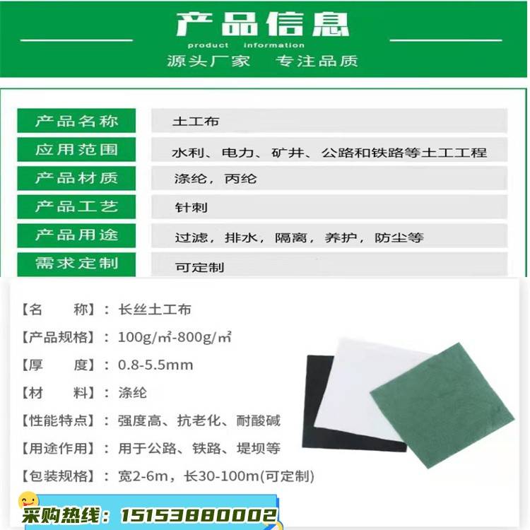 根据您对“白银土工布”和“白银聚酯长丝无纺布”的查询,我为您整理了相关的产品信息和供应商资料。目前,参考信息中并未直接提及位于“白银”地区的生产厂家,但提供了其他地区(如山东、江苏)的优质供应商信息,这些供应商的产品与您所需类型高度吻合,可供您参考和联系。