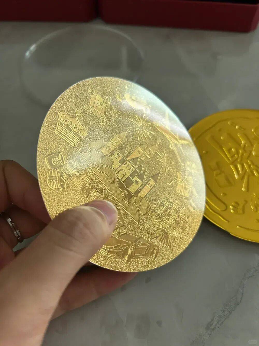千万不要被它庞大的外表唬住了,实际上,大部分小克重黄金大饼都是铝纸上覆盖了一层薄如蝉翼的金箔。