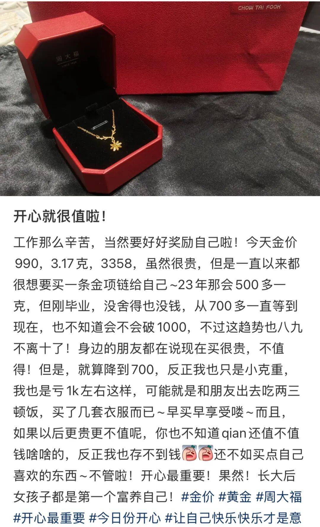 黄金不再是一种金属,而是一种情绪寄托,是一份小小的犒赏,是一句“我值得”。