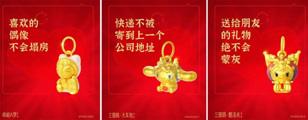 通过“小克重+IP联名营销”,潮宏基把谷子经济的圈层逻辑、IP经济的情感价值,和小克重黄金绑定在了一起,把金饰做出了情绪价值,让年轻人心甘情愿为了喜欢的IP去买单。