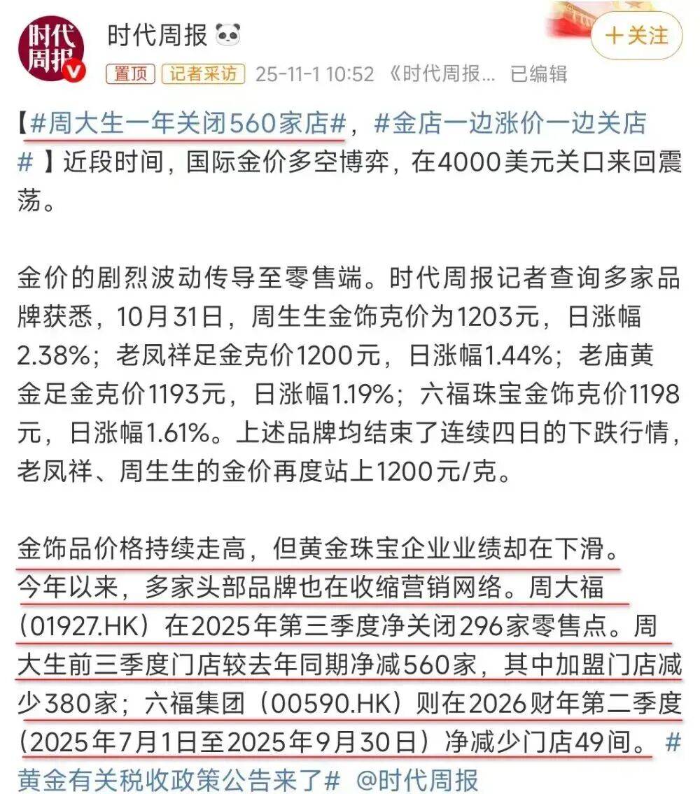 大多数金店呈现一个诡异的趋势:一边忙着涨价,一边忙着关店。