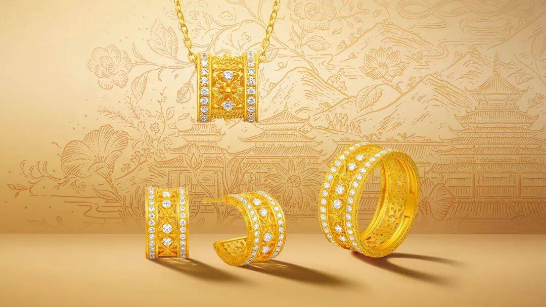 不仅如此,潮宏基还借助非遗工艺,创立花丝镶嵌工作室,将传统文化元素糅进时尚的珠宝产品,一度把古法黄金卖出万元价位。