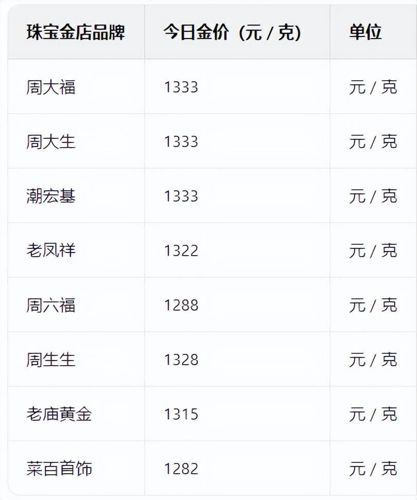 截至发稿,国内品牌金店的首饰金价整体再再再创新高,整体价格已经突破1300元大关。