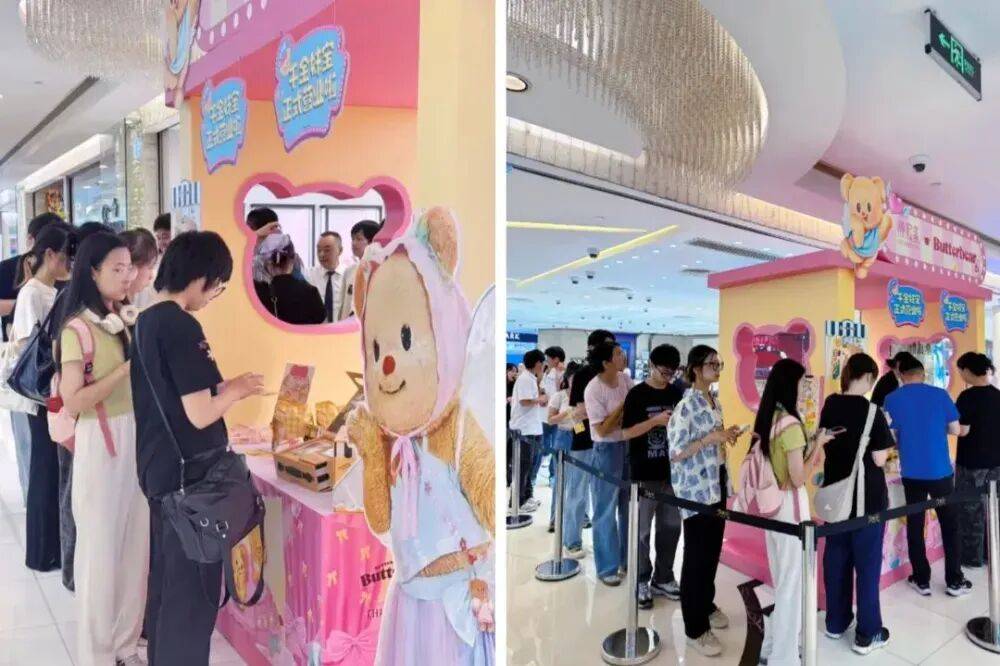 ● 粉丝在商场排队抢购黄油小熊联名款。图片来源:潮宏基官网
