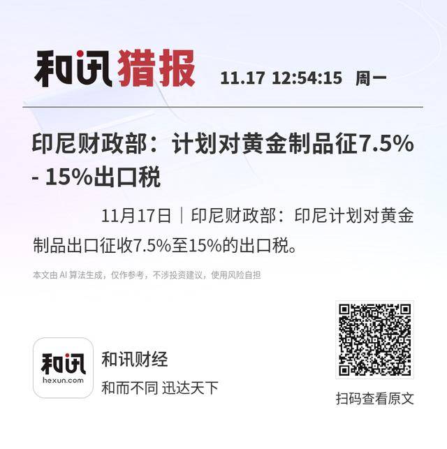 11月17日|印尼财政部:印尼计划对黄金制品出口征收7.5%至15%的出口税。