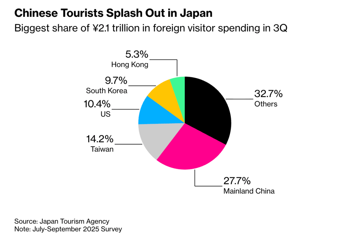 旅游业一直是日本经济低迷时期少有的增长支柱,而中国游客是最重要的组成部分——这就是“为什么这次冲击更痛”的根本原因。