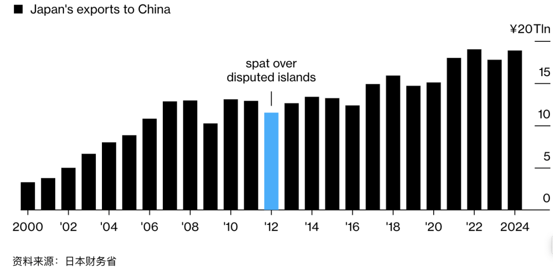 他援引 2012 年钓鱼岛问题的经验:当时赴日中国游客的数量较前一年暴跌约 25%。短短三个多月内,这一变化便使日本当年出口额下降了超过10%,对经济造成直接冲击。