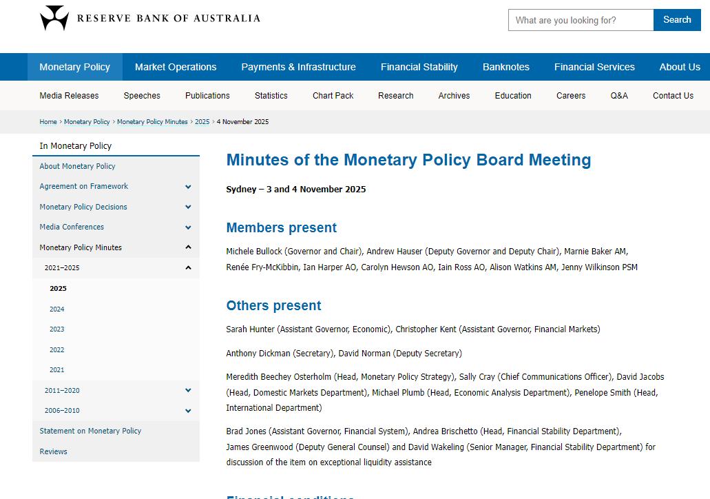 澳大利亚央行11月18日发布的11月货币政策会议纪要显示,货币政策委员会成员一致同意将基准利率维持在3.6%不变,并深入探讨了近期通胀飙升的影响、劳动力市场的前景,以及货币政策是否仍具有限制性。