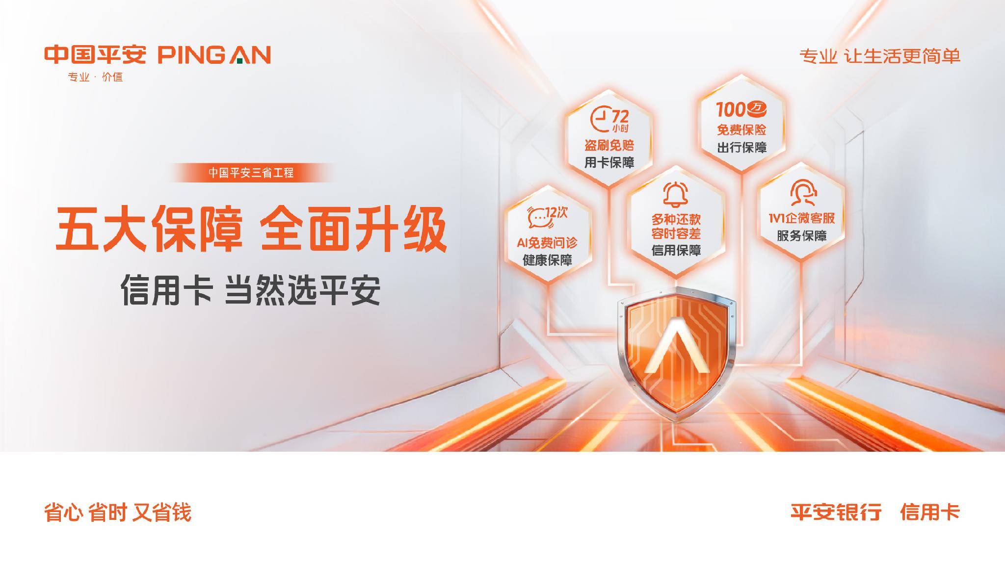 拆解此次平安银行信用卡升级的五大基础保障来看:“72小时盗刷免赔”服务,成为行业唯一一家覆盖挂失前72小时、至高30万元赔付额度、理赔流程优化至3-5个工作日的用卡保障;旅行保障,带来海陆空出行全方位交通意外保障,保额至高100万;健康保障,引入平安专业的“AI医生”免费问诊服务,首次在行业内为所有持卡用户标配健康保障。“AI医生”可为近4500万平安银行信用卡用户提供全年12次免费智能问诊,实现7x24小时、5秒内极速响应的专业健康解答;升级还款服务,提供自扣还款、预约还款、分期还款、积分还款、最低还款等多种服务。自扣还款支持本行储蓄卡免服务费自动还款,省心又省时,同时匹配还款提醒、还款3天容时100元容差、最低还款比例低至2%等多种服务举措;搭建企业微信服务体系,由专属客服经理提供1对1服务,结合AI智能体辅助,可以随时随地全面解答用户问题,并能主动提供个性化关怀和权益活动推荐等。