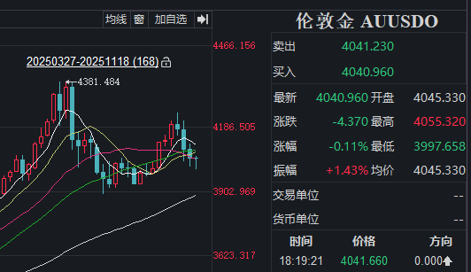 11月18日,伦敦现货黄金(下称“伦敦金”)现“V”形走势,盘中一度失守4000美元/盎司重要关口;伦敦现货白银(下称“伦敦银”)回升至50美元/盎司上方。