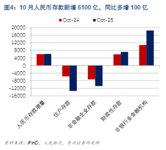 央行最新数据显示,10月,“存款搬家”现象重现,居民存款同比减少约7700亿元,非银机构存款同步多增7700亿元。事实上,自7月以来这一现象备受关注。中金公司推测,非银存款高增主要由于居民存款向券商保证金账户和权益类公募基金迁移。
