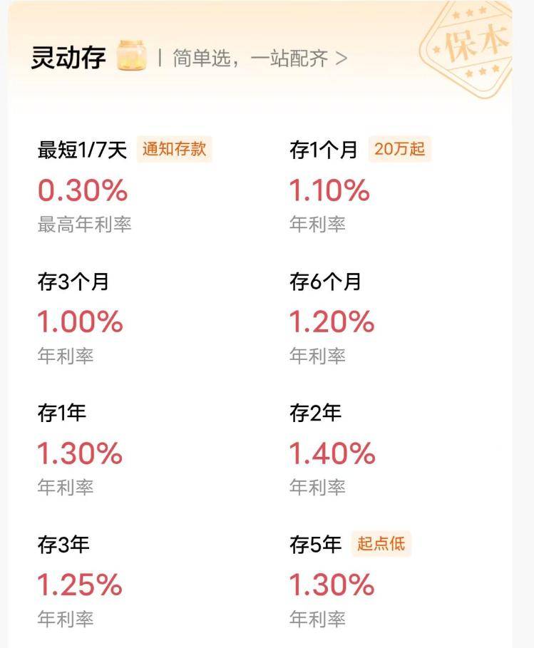 例如,某国有行5年期整存整取存款利率为1.3%,而该行3年特色定期存款利率最高可达1.55%;某股份制商业银行存2年利率为1.4%,而存3年利率为1.25%,存5年利率为1.3%。