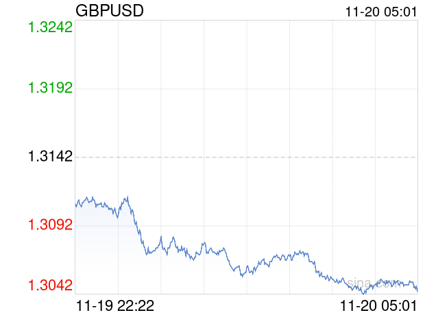 新浪外汇消息2025年11月20日,截至05时00分,外汇市场上英镑兑美元汇率跌破1英镑兑换1.3045美元。跌幅为-0.7381%