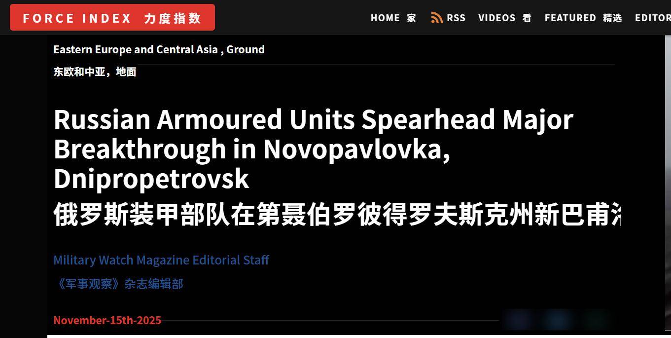 俄乌战争爆发之后,大规模坦克突击战遇上不小的问题,在进入阵地战之后,坦克不再集中使用。最近情况又发生了变化,美国媒体《军事观察》在2025年11月15日报道称,俄罗斯坦克大军强突乌克兰第聂伯罗彼得罗夫斯克州新巴甫洛夫卡,并取得重大突破。