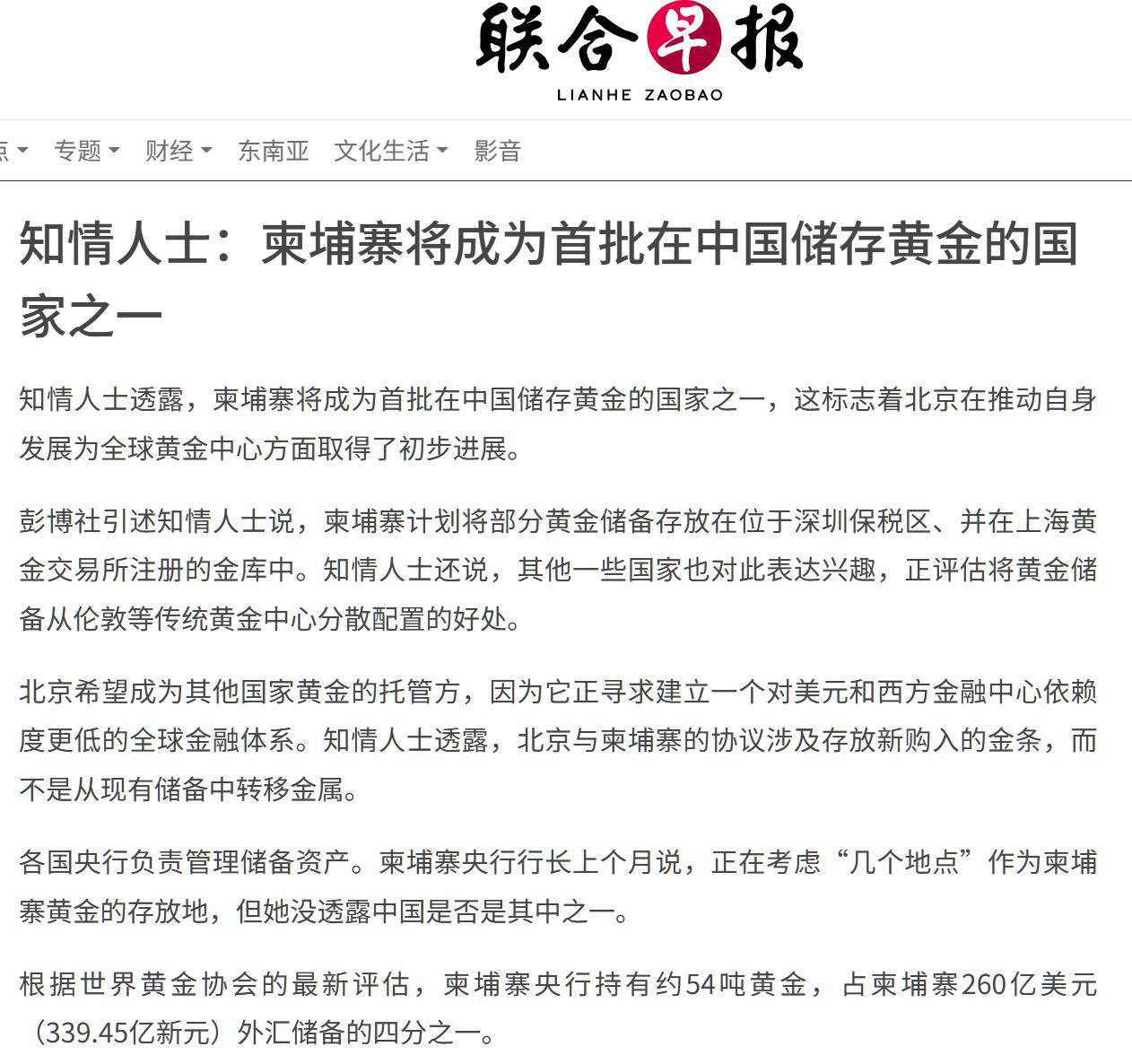 就在上个月,柬埔寨央行行长对外透露,准备将柬埔寨的黄金储备分散存放在一些新的地方。而据媒体报道,深圳保税区将是柬埔寨存放黄金的目标地点之一。