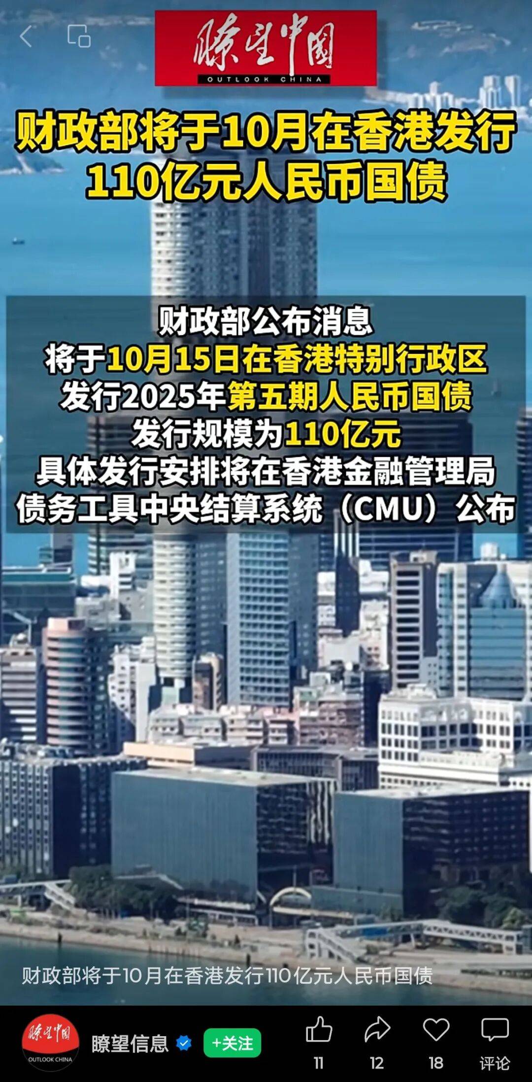 财政部10月15日在港发行2025年第五期人民币国债110亿元——这笔“国家活水”将精准滴灌中小微企业。