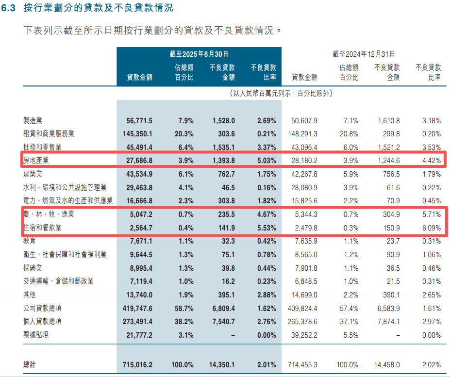 (图 / 中原银行2025年上半年不良贷款行业分布情况(来源:中原银行2025半年报))