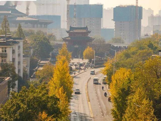这条长约1.2公里的银杏大道,位于武昌首义路从张之洞路至起义门路段。道路两旁的银杏树金黄璀璨,层层叠叠的银杏叶随风飘落,铺就一条柔软的“黄金地毯”,与起义门的古建筑交相辉映,引得游人驻足流连。