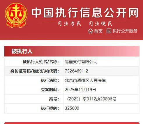 近日,易宝支付有限公司新增一则被执行案件,执行法院为北京市通州区人民法院,案号为(2025)京0112执20806号,执行金额高达32.5万元。