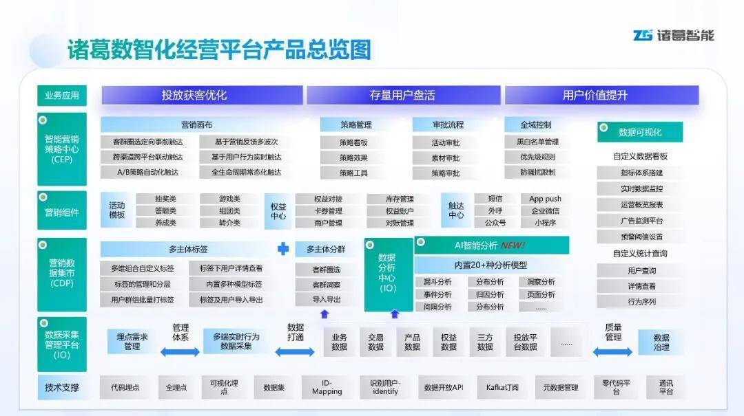 诸葛智能是容联云旗下敏捷开放的场景化数据智能服务商,为企业提供实时的全渠道数据采集整合、全维度数据分析、全场景用户标签画像,辅以个性化自动化的营销平台+策略配置,助力企业快速洞察市场趋势,迭代经营决策,实现营收增长。