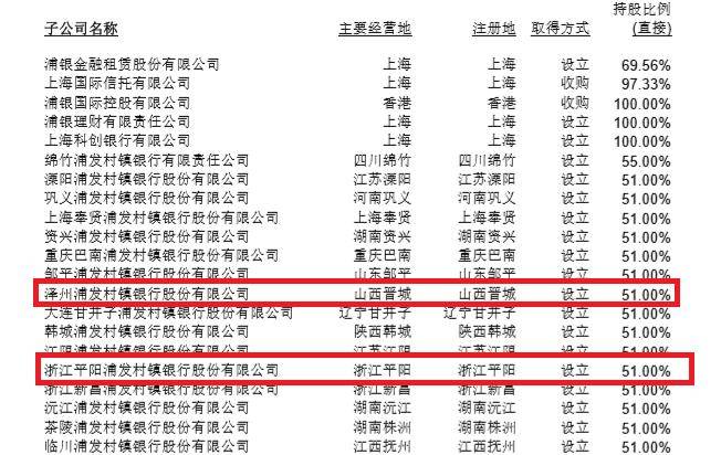 2025年半年报显示,浙江平阳浦发村镇银行同样为浦发银行旗下子公司,主要经营地和注册地均在浙江平阳,浦发银行持股比例为51%。