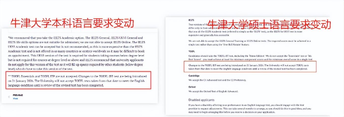 但与剑桥不同,牛津大学在宣布不接受新托福成绩作为硕士课程语言能力证明后,再次官宣不接受2026年1月21日及之后的新托福成绩作为本科生课程语言能力证明,直至新版考试考核完成!