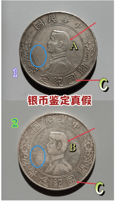 1.看模具:后铸银币用的是官方原模具(或者复刻得很像),花纹、字体跟老银币几乎一样;假货的模具是随便刻的,细节糊成一团;
