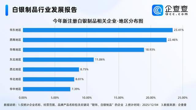 企查查数据显示,截至12月4日,国内现存白银制品相关企业8.44万家。从经营时间来看,白银制品相关企业多为老牌企业,成立年限在5-10年的相关企业最多,占比过半,达52.56%。从城市能级分布来看,分布在一线城市的白银制品相关企业最多,占比34.55%。注册量方面,2024年全年注册1620家相关企业,截至目前,今年已注册1474家。