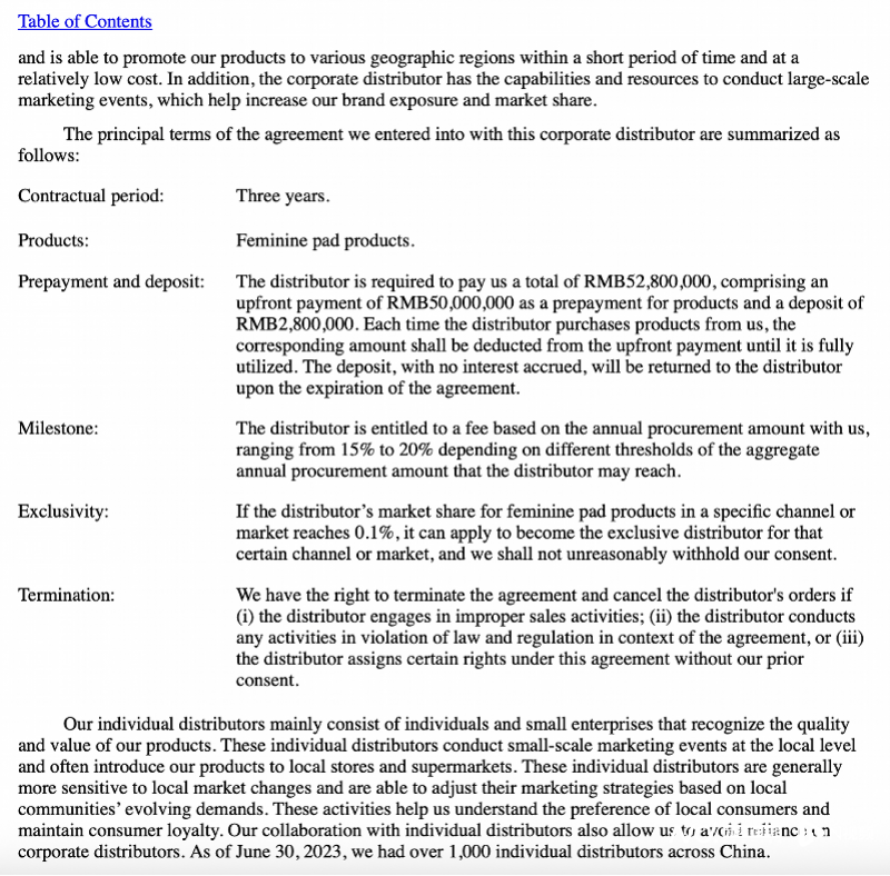 上文提及,大树云控股号称拥有1000多家独立经销商。相关公告同时表示,截至2023年6月30日,(经销体系)覆盖了中国100多个城市11300多家零售店。