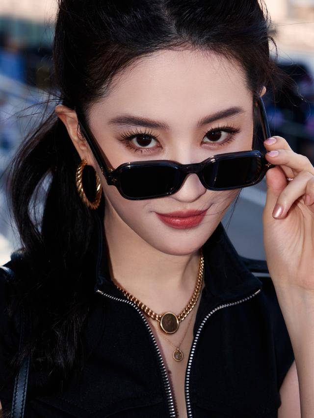 阳光下,刘亦菲身上金光闪闪,满身18K金首饰叮当作响,就算是没带宝格丽也够闪,项链、手镯、耳环层层叠叠,像行走的珠宝展。