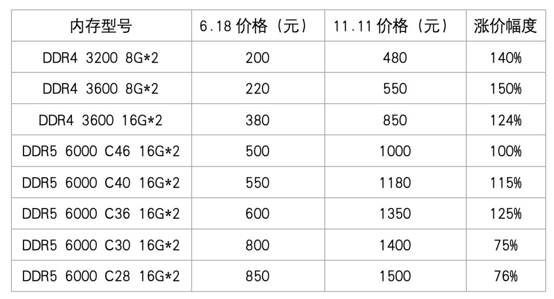 2025年以来,内存价格在6月一小涨,10月一大涨,涨幅基本超过100%,年底的价格可能更加疯狂。