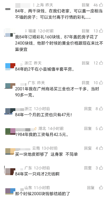 12月9日,广东一珠宝店店员发视频称,一位东北阿姨1984年买的黄金,当时仅47元/克,阿姨买了50克,花了两千多块。