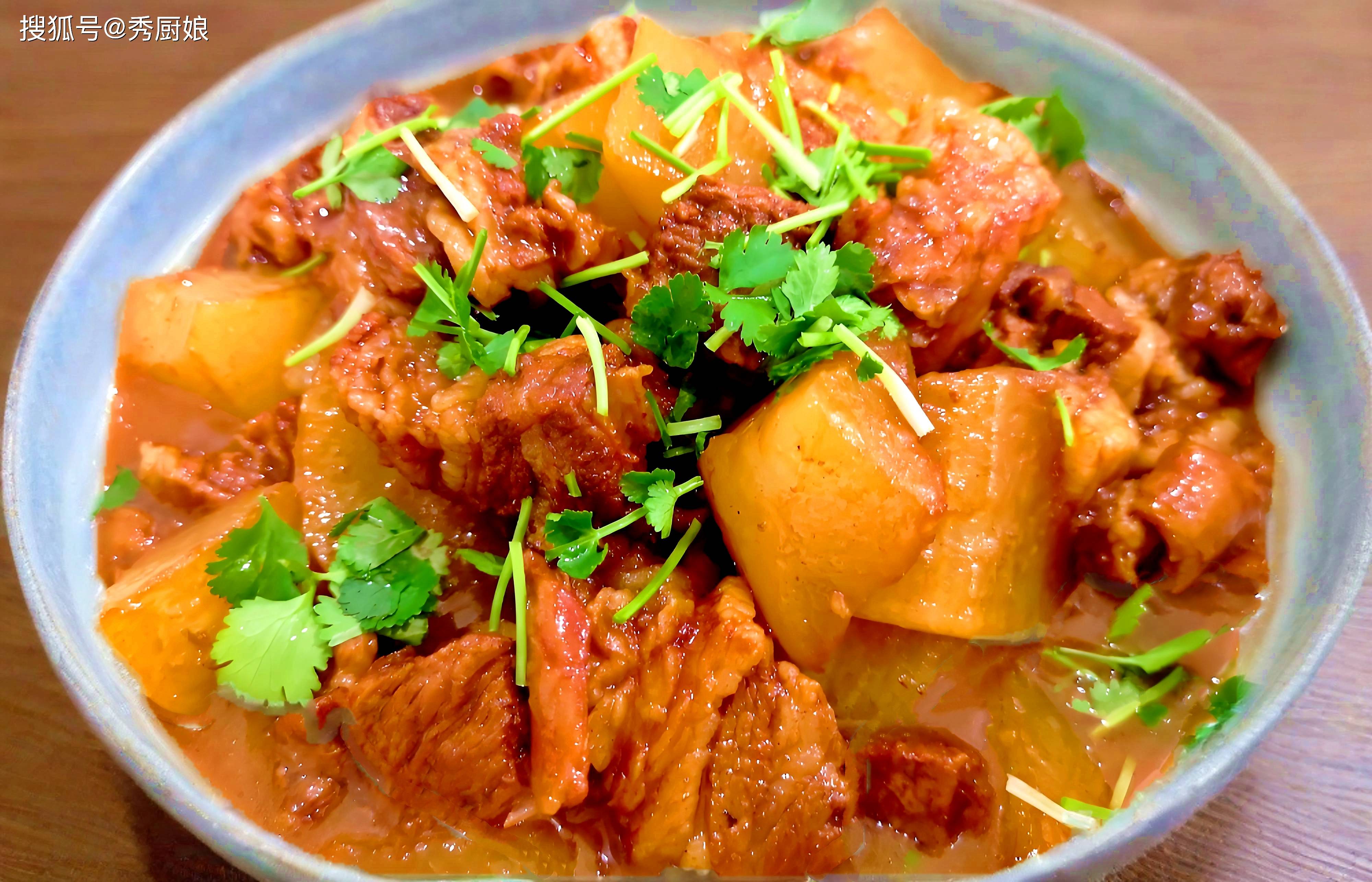 三、羊肉;推荐食谱:红烧羊肉炖白萝卜