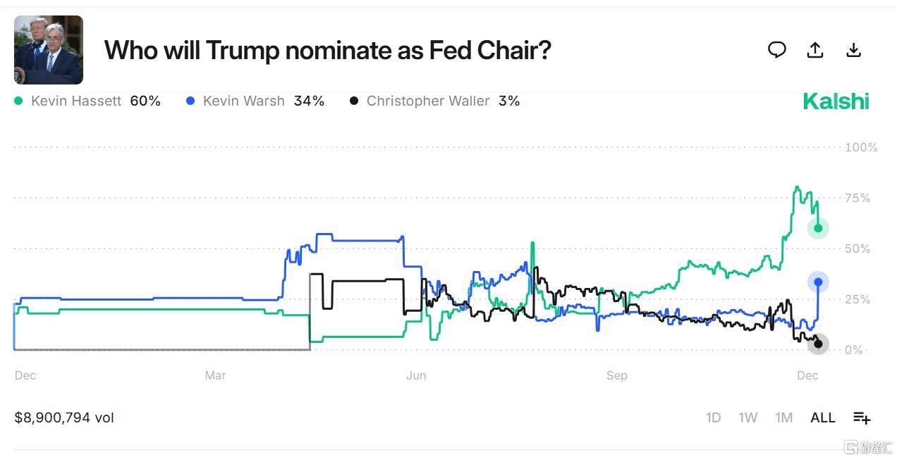近几个月来,哈塞特一直是市场预期的美联储主席的最热门候选人。