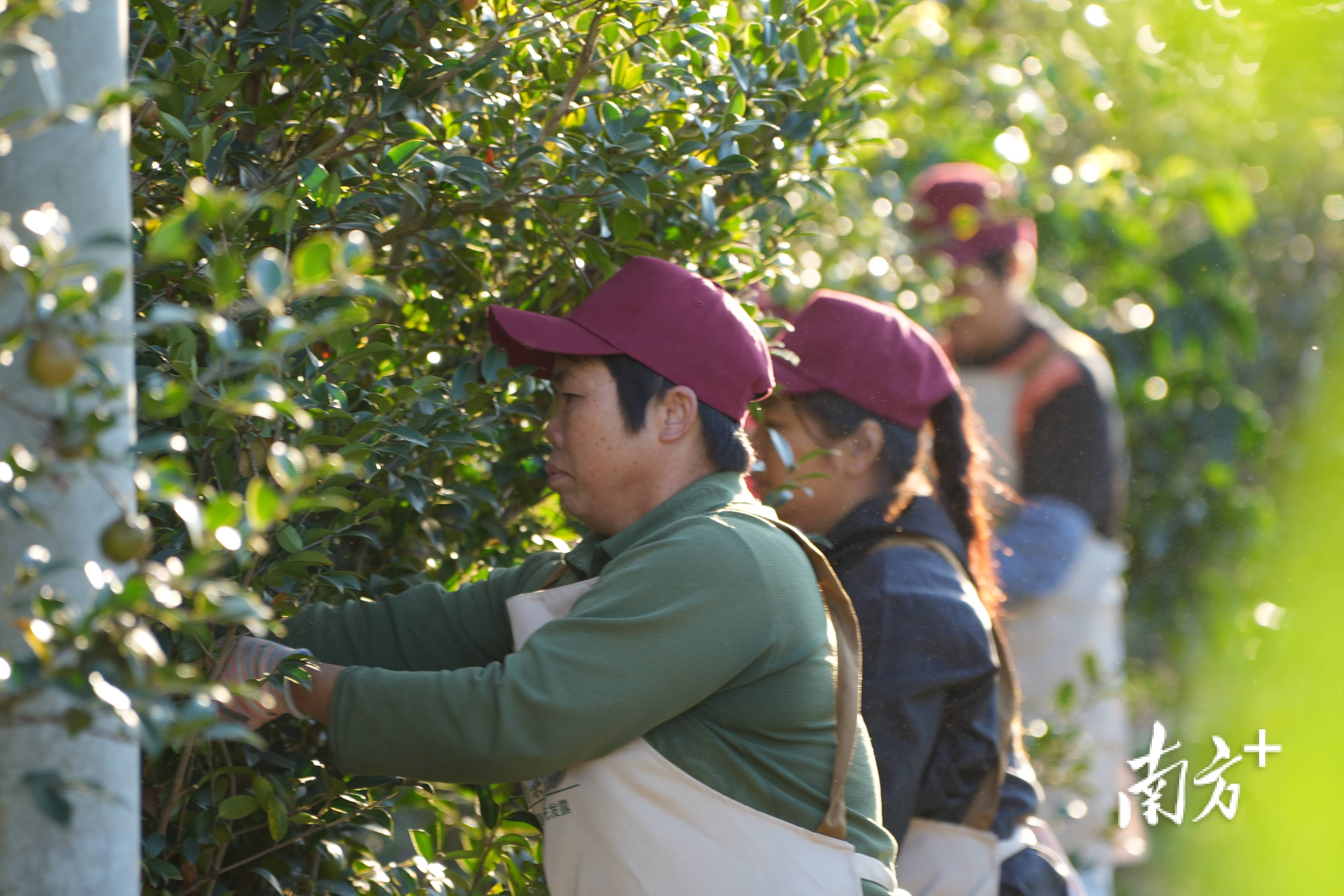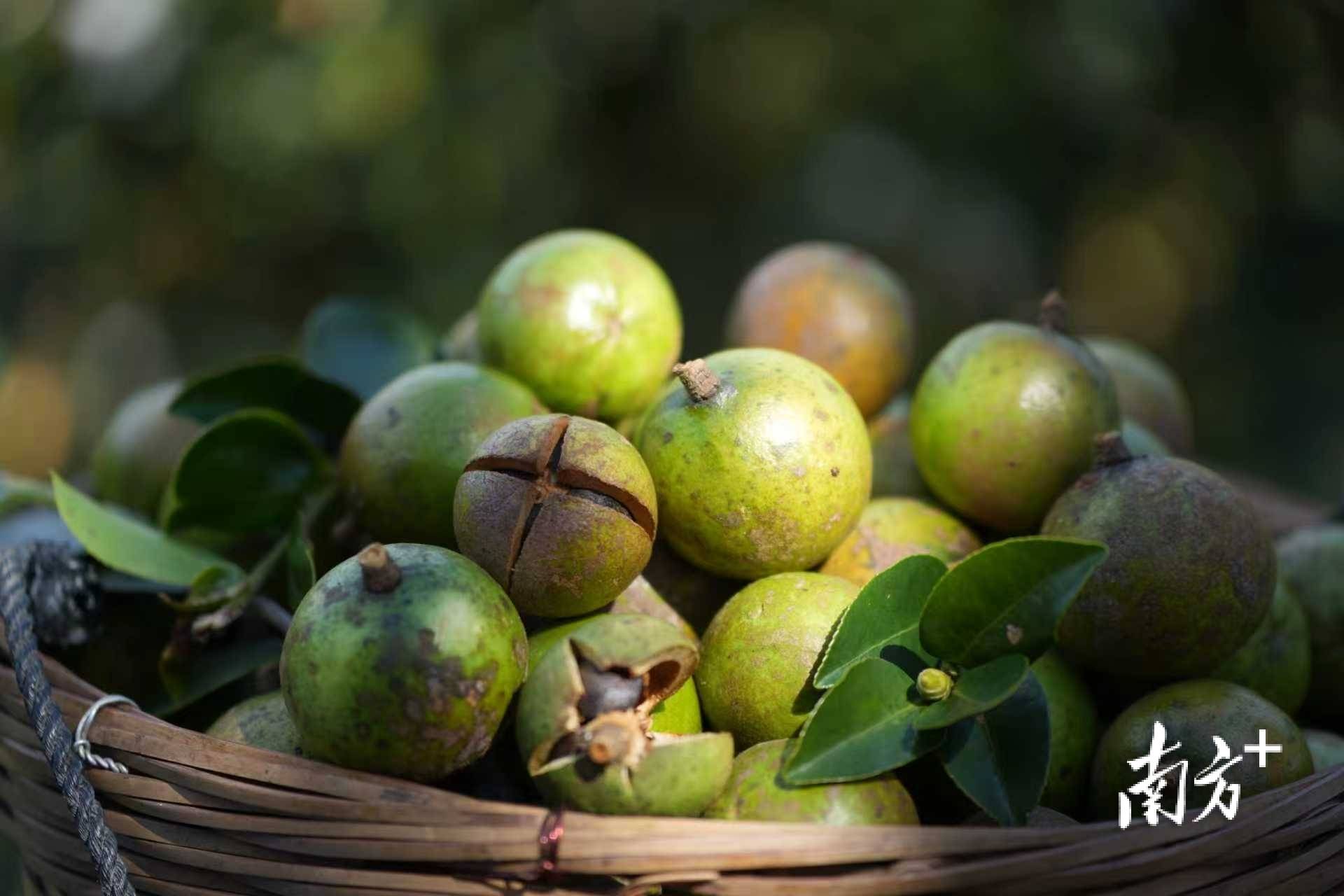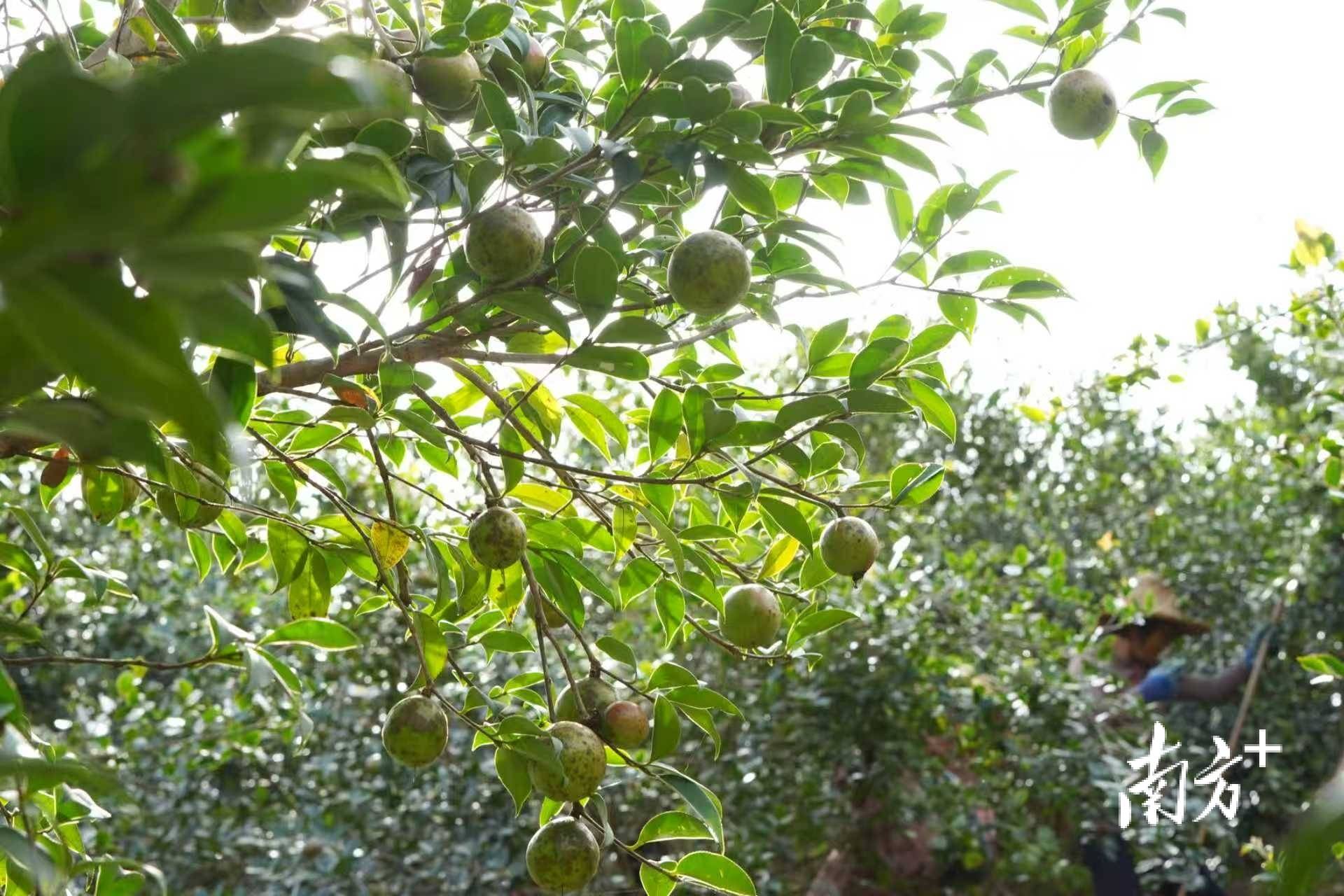 凭借境内多丘陵山地的地形优势与独特的昼夜温差气候滋养,郁南油茶成为镶嵌在山林间的“黄金果”。2024年,全县油茶种植总面积达1.35万亩,年产量8100吨,产业产值约2430万元。