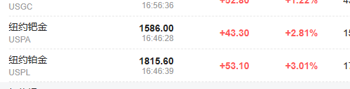 纽约铂金期货涨超3%,报1815.80美元/盎司。