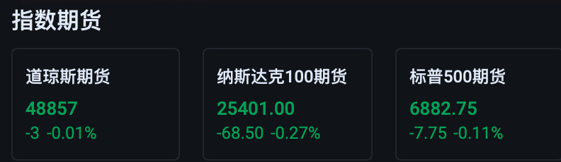 美股期指低开后纷纷走低,纳斯达克100期货领跌。