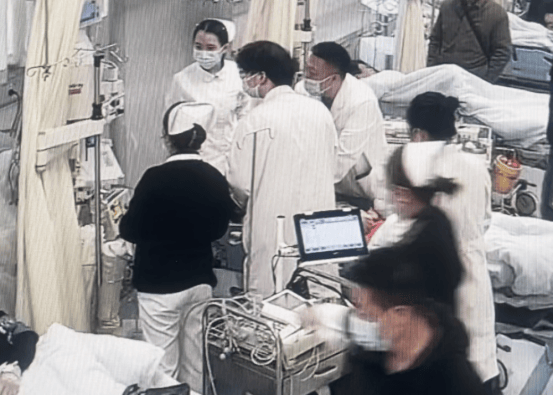 几乎在心肺复苏的同时,医院的应急体系被全面激活。急诊医护携带急救设备火速抵达,“先救治、后付费”的胸痛中心绿色通道同步开启。“患者以‘无名氏’身份被录入系统,直送抢救室,所有流程为生命让行。”急诊科副主任徐顺娟介绍道。