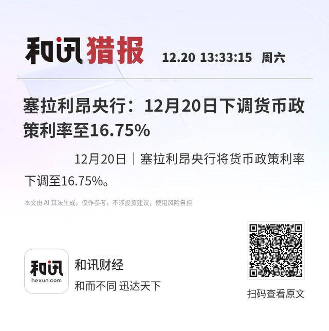 12月20日|塞拉利昂央行将货币政策利率下调至16.75%。