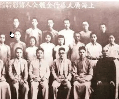 陆旭章(前排右二)与广大华行的同事在上海合影。他足智多谋,适应力强,尽管党内部腐败横行,他仍然忠于党。