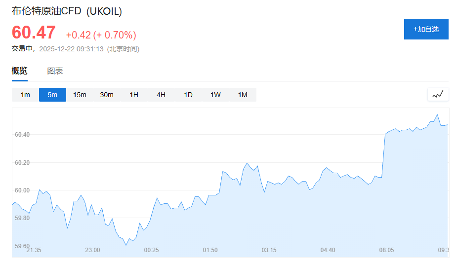 石油价格走高,特朗普加强了对委内瑞拉的封锁,美国军方在数周内登上第三艘油轮。布伦特原油在连续两周下跌后攀升至每桶61美元附近,WTI原油接近57美元。