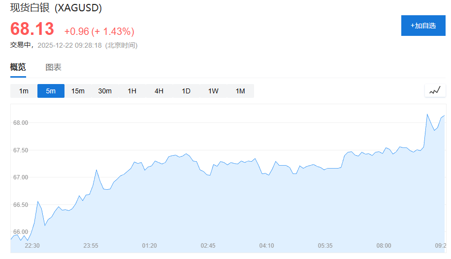 白银上涨2.25%至每盎司68.68美元的历史高位,盘中曾飙升至69.45美元/盎司的历史高位,年内翻倍,有望创1979年以来最佳年度表现;